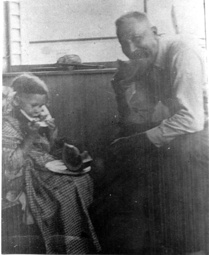 Helen Nadine with Grandpa Philip Gottfried Back easting watermelon. The family tradition was to cut the first watermelon of the season on Helen’s birthday of August 9. This picture may be commemorating Helen’s favorite childhood memory.